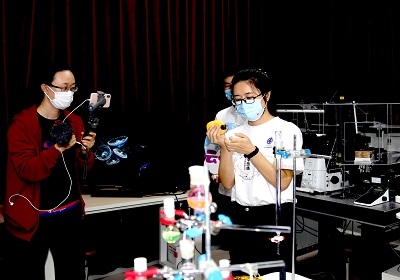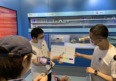 “硬核展馆来了!带你穿梭DICP70年!”场次中,主播通过对大连化物所走过的重要历史足迹的回顾和对张大煜和张存浩两位先生的感人事迹的讲述,抒发了研究所以国家需求为导向,锐意创新、协力攻坚的精神与情怀。“走近世界上最亮的极紫外光源、认识环保与食品安全的先锋卫士”场次介绍了大科学装置大连光源的背景、原理和应用,通过形象生动的互动展示了仪器分析在食品、环境、安全等领域的应用。在“闪闪荧光点亮细胞”场次,主播通过美丽神奇的荧光现象的展示,带观众走进了分子探针和荧光成像下的奇妙生命世界。在“来分子反应动力学国家重点实验室,给分子原子拍照片、拍电影”场次,通过对飞秒、纳米等概念的讲解和对飞秒实验室和扫描隧道显微镜等仪器设备的观察,让观众了解了科学家如何捕捉微观世界的反应过程。