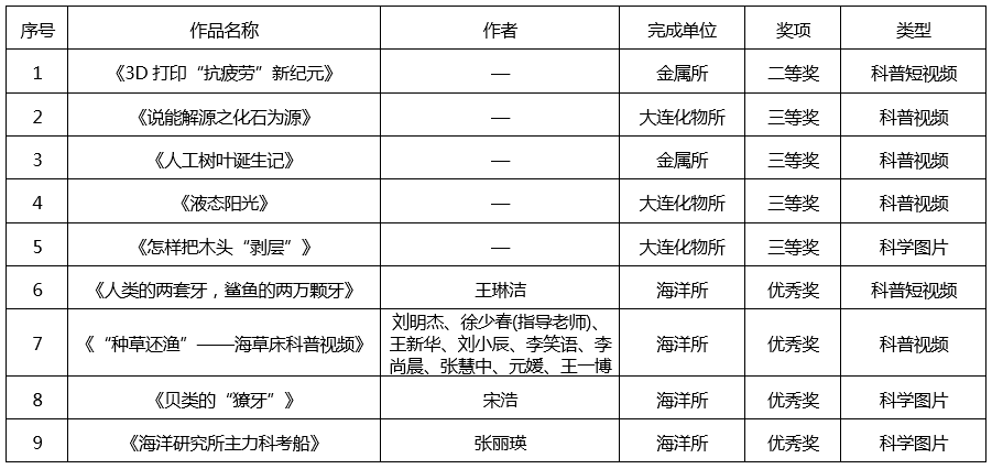 近日,中国科学院公布2024年科普视频图片大赛获奖名单。沈阳分院系统单位荣获9项奖励,其中二等奖1项、三等奖4项、优秀奖4项。