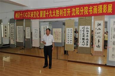 沈阳分院分党组书记姬兰柱致词,他盛赞本次展览作品水平高,文化氛围浓厚,充分展示了老同志们扎实的文化功底与深厚的艺术底蕴,抒发了老同志们迎接党的十九大召开的喜悦之情, 并祝愿本次展示活动取得圆满成功。