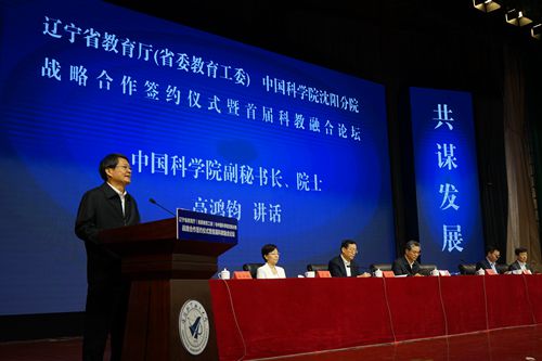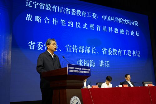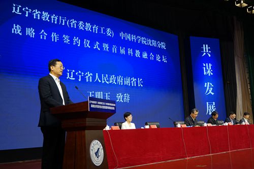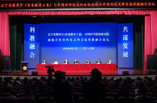 为深入贯彻落实创新驱动发展战略,充分发挥中国科学院研究所和高等学校双方的优势,推进科教融合工作,2019年9月17日,中国科学院沈阳分院与辽宁省教育厅(省委教育工委)签署了战略合作框架协议,中科院驻辽4家研究所与辽宁省13所高等学校签署了26项合作协议,同时组织开展了辽宁省首届科教融合论坛。中科院副秘书长、中国科学院院士高鸿钧,前沿科学与教育局副局长王颖,中科院沈阳分院院长韩恩厚,中科院大连化学物理研究所党委书记王华,中科院金属研究所所长左良,中科院沈阳应用生态研究所党委副书记郝欣,中科院沈阳自动化研究所副所长李硕,教育部科技司副司长檀勤良,辽宁省委常委、省委宣传部部长、省委教育工委书记张福海,辽宁省人民政府副省长王明玉,辽宁省委教育工委副书记、省教育厅党组书记、厅长冯守权,副厅长花蕾,以及签约高校及省内各普通本科高校的领导共计100多人参加了会议。