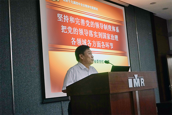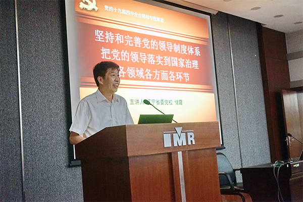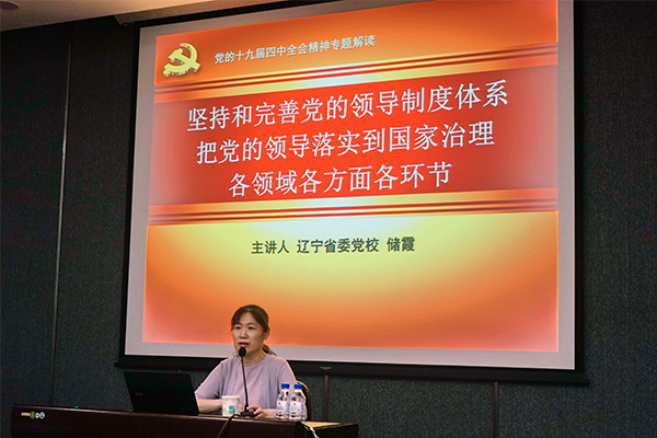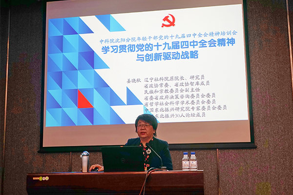 在培训会议上,辽宁省社会科学院原院长姜晓秋教授作了题为《学习贯彻党的十九届四中全会精神与创新驱动战略》专题报告,辽宁省委党校储霞教授作了题为《坚持和完善党的领导制度体系 把党的领导落实到国家治理各领域各方面各环节》主题报告。报告系统全面地讲述了党的十九届四中全会的时代背景和重大意义、重点任务和战略部署、坚定制度自信与提高治理能力、以及党的领导制度历史传承和坚决落实党的领导等全会精神的实质内涵,并号召广大年轻干部要脚踏实地,以坚定的理想信念和优良的思想作风,不断推进国家科技创新事业的发展。