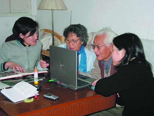 2003年12月与李风兰、出版社编辑一起审稿
