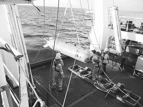 本次试验由广州海洋地质调查局组织实施?!昂Q罅拧贝匝槟复?,来自沈阳自动化所等单位的12名科研人员参加了此次海上验收试验工作。