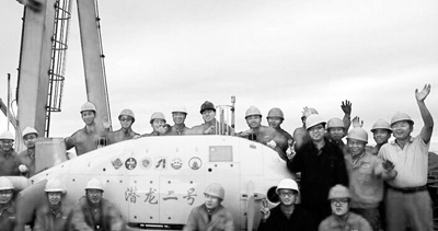 第一步是入水。当然,这需要人力来完成。操作人员通过吊车把它放到水中,解除吊车和潜器之间的联系后,它就开始自己往指定区域下潜。如何下潜呢?一方面,潜器自身有重力;另一方面,它配有一块重约25公斤的下沉压载铁。依靠它,潜器下潜的速度可达每分钟40米,极大节约了能源。