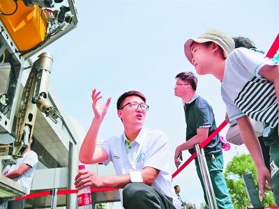 5月19日上午,2018年中国科学院在沈科研机构公众科学日活动在中科院沈阳自动化所启动。曾担任重要科考任务的“潜龙三号”、深海科考型ROV系统两款水下机器人,首次与社会公众见面。光明日报记者 刘勇摄/光明图片