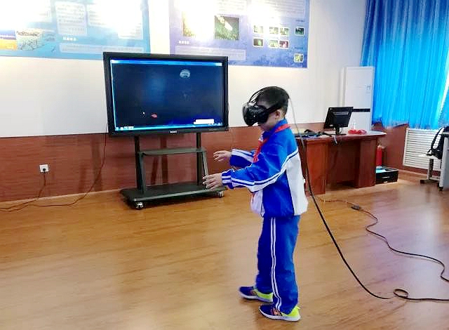 利用九三学社青岛市委的社会服务平台,中科院海洋研究所委员会的海洋专家们,于2017年5月19日第一次将“深海虚拟现实VR体验”带进莱西市实验小学,这所位于青岛最北端、远离大海的学校,开展科普活动,受到孩子们的热捧。当天,中科院海洋研究所委员会决定,帮扶莱西市实验小学建立海洋特色学校。时隔不到一年,2018年4月2日,“同心九三科普行”暨莱西市实验小学海洋科普基地授牌仪式在学校举行,海洋科普教育基地正式落成。社员们将一套虚拟现实技术设备捐献给学校,同时还捐建了一座海洋生物标本馆,内有海洋生物标本40余个品种。