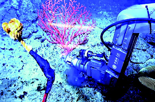 “一雌一雄两只伉俪虾幼时结对进入海绵腔体,星罗棋布的体表网孔让它们在里面白头偕老一生相伴,造就了偕老同穴——舟体海绵。这是我国新一代海洋科学综合考察船‘科学’号搭载的‘发现’号ROV深?;魅嗽?372.5米海底发现的生物奇观。深邃的大海里有太多神奇,期待我们探秘?!痹谥锌圃汉Q笏锉瓯竟?馆长王少青为我们揭开深海神秘的一角。