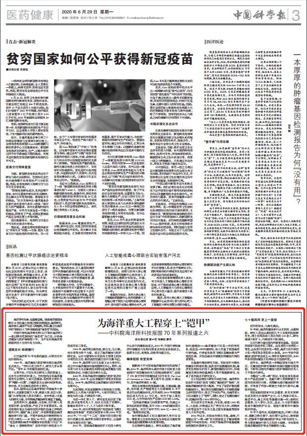 创新离不开对国家海洋腐蚀状况的详细了解。2014年,海洋所牵头承担中国工程院重大咨询项目“我国腐蚀状况与控制战略研究”,出版了170余万字《中国腐蚀成本》专著及The Cost of Corrosion in China英文版专著,出版35部丛书,其中海洋所承担10部。