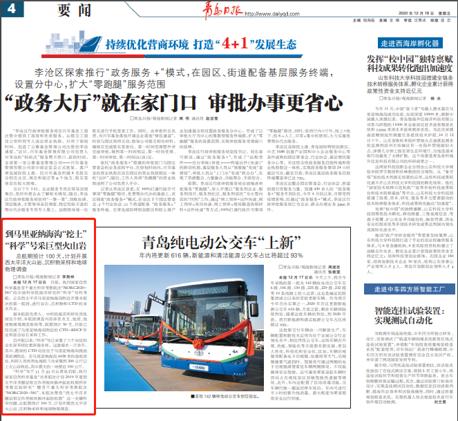 “科学”号于11月23日从青岛启航,执行国家自然科学基金“共享航次计划2019年度西太平洋多圈层相互作用板块俯冲起始机制科学考察实验研究”暨首个重大科学考察航次“NORC2020-581”。本航次聚焦“西太平洋多圈层相互作用板块俯冲起始机制”这一关键科学问题,总航期预计100天,计划开展西太平洋火山岩、沉积物采样和地球物理调查。
