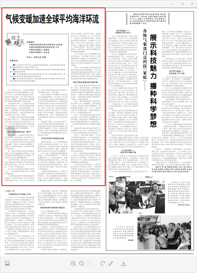 自工业革命以来,人类活动持续排放的温室气体导致地球能量收支失衡,其中90%以上的新增热量被海洋吸收,致使海洋持续变暖。作为地球气候系统的主要“储热器”,海洋将表层长期增暖的大量额外热量转移至中深层区域。