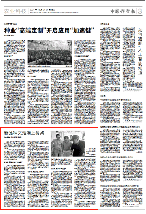 “十二五”以来,在“国家高技术研究发展计划”的资助下,中国科学院海洋研究所研究员刘保忠带领团队攻克多项技术难关,培育出“科浙1号”与“科浙2号”文蛤,大大提高了文蛤的质量与产量,为滩涂贝类产业良种化和可持续发展提供科技支撑。
