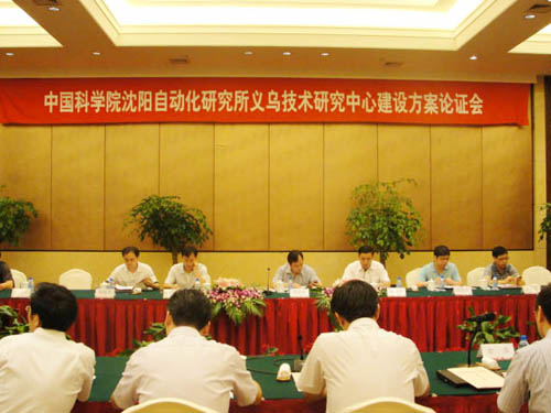 8月20日,在义乌市举行了义乌市人民政府与中国科学院沈阳自动化研究所共建“中国科学院沈阳自动化研究所义乌中心”建设方案论证会。沈阳自动化研究所所长王越超、中科院上海分院副院长朱志远、义乌市政府吴森民副市长、浙江省科技厅、金华市科技局、义乌市政府有关部门、义乌行业协会和企业代表等应邀参加论证会。