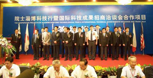 9月8日下午,举行了“院士淄博科技行暨国际科技成果招商洽谈会”合作项目签约仪式。山东省科技厅副厅长、中科院沈阳分院院长助理、中科院山东中心主任王晓斌,淄博市委书记刘慧晏、市长周清利等出席签约仪式。