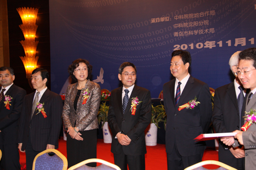 2010年11月10-12日,由中国科学院与青岛市政府联合主办,中科院院地合作局、中科院沈阳分院、青岛市科学技术局承办的“2010中国 青岛产学研合作洽谈会”在青岛举行。中科院副院长施尔畏,院地合作局局长戚强、沈阳分院副院长韩恩厚,山东省科技厅副厅长、中科院山东中心主任王晓斌,山东省委常委、青岛市委书记李群,市委常委、副市长张惠、市委秘书长王鲁明等领导出席了开幕式及签约仪式。施尔畏副院长和张惠副市长分别致辞。