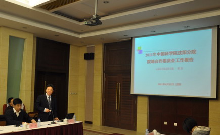 4月15日,沈阳分院2011年院地合作委员会工作会议在沈阳迎宾馆召开。中国科学院院地合作局东北京津处处长陈文开,沈阳分院院长包信和,副院长韩恩厚、梁波以及分院系统各单位院地合作工作主管领导和相关部门负责人共30余人参加会议?;嵋榉直鹩砂藕汀⒑骱窈土翰ㄖ鞒?。