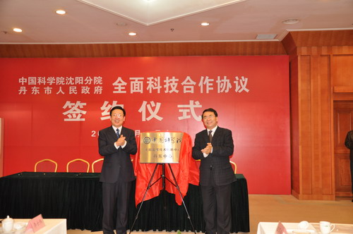 4月17日,中国科学院沈阳分院与丹东市人民政府全面科技合作协议签约仪式在丹东宾馆隆重举行。中国科学院院长、党组书记白春礼,丹东市委书记戴玉林在签约仪式上讲话并共同为中国科学院沈阳国家技术转移中心丹东中心揭牌。沈阳分院院长包信和,丹东市委副书记、市长赵连生代表院市双方在全面科技合作协议上签字。签约仪式由丹东市委副书记李树民主持,沈阳分院副院长梁波代表双方汇报了市院合作情况。