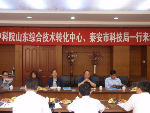 2012年6月12日,中科院沈阳分院院长助理、中科院山东中心主任徐岩和泰安市科技局郭向军局长等一行6人到中科院昆明分院调研。昆明分院院长王庆礼、科技合作处处长戴开结等接见了徐岩和郭向军一行。