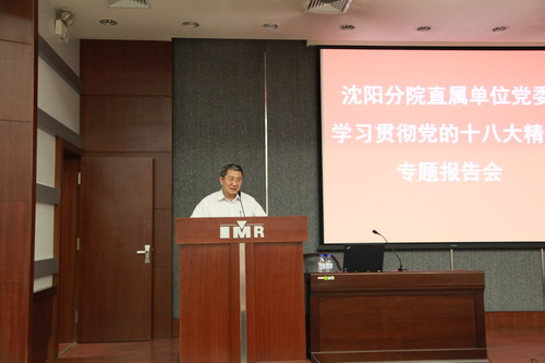 为继续深入学习贯彻落实党的十八大精神,进一步提高分院系统党建工作科学化水平,同时为下半年开展党的群众路线教育实践活动做好准备,6月20日下午,沈阳分院直属单位党委在金属研究所学术报告厅举行了学习贯彻党的十八大精神专题报告会。报告会由沈阳分院党组书记、副院长、沈阳分院直属单位党委书记马思主持。