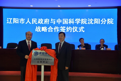 韩恩厚和王正谱共同为“中科院沈阳国家技术转移中心辽阳中心”揭牌。辽阳中心的建立是中科院沈阳分院贯彻落实国务院东北振兴方案的具体举措。双方商定,将以共建辽阳中心为全面科技合作的新起点,结合辽阳市的石油化工、装备制造等特色产业需求,不断加强中科院先进科技成果的转移转化和人员交流,不断创新多种市院合作方式和模式,为建立健全辽阳市科技创新体系,促进辽阳市经济社会发展做出新的贡献。