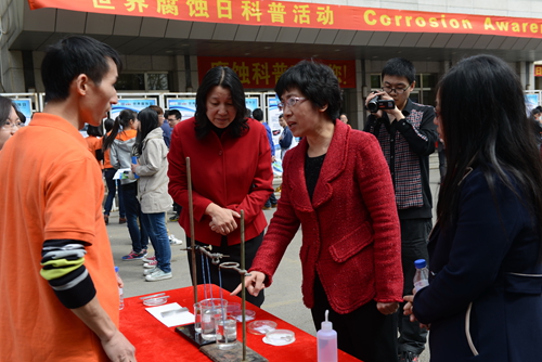 活动中,世界腐蚀组织副主席、中国科学院沈阳分院院长、金属所韩恩厚研究员为来自东北大学、沈阳建筑大学、沈阳师范大学、沈阳市第二中学的数百名师生做了题目为“腐蚀—人类的重要课题”的精彩报告。报告生动地介绍了腐蚀问题与国民经济建设和国防建设息息相关,我国每年由于腐蚀造成的经济损失约占国民生产总值(GNP)的5%,腐蚀不仅仅给国民经济造成巨大损失,还会对人们的安全、健康和生活质量造成重大影响。同时腐蚀也是可以利用的,如电路板刻蚀中的应用。辽宁电视台、沈阳电视台等新闻媒体对本次活动进行了全方位报道。