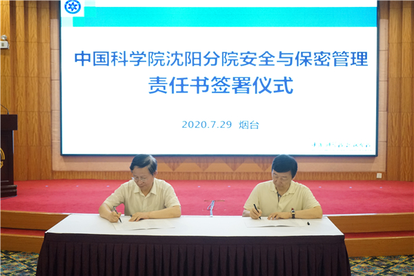 沈阳分院院长韩恩厚与分院系统大连化物所、金属所、沈阳生态所、沈阳自动化所、海洋所、青岛能源所、烟台海岸带所所长以及沈阳计算公司、沈阳科仪公司总经理逐一签署《沈阳分院安全与保密管理责任书》。