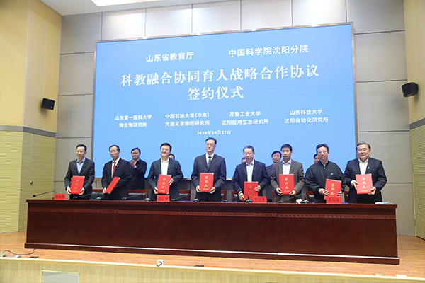 沈阳分院高度重视科教融合工作,与山东省教育厅进行了多次会商与沟通,争取校所科技融合联合培养专项招生计划,用于中科院驻鲁单位与山东科技大学、青岛大学等山东高??购献?。与山东科技大学签署合作协议,组织了多次中科院驻青院所的对接交流会,所校间发挥各自优势,在协同育人、协同创新、科学研究等方面开展了广泛的交流与合作,并取得显著成效。