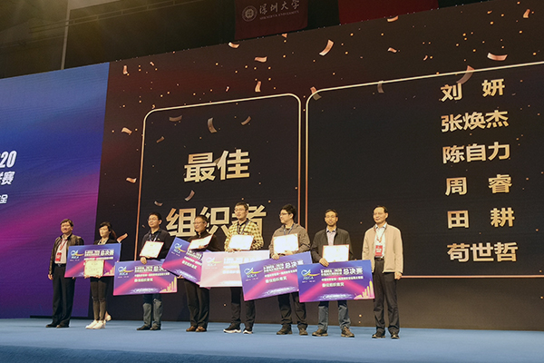 12月9日上午,大赛颁奖仪式在深圳大学体育馆隆重举行,中国科学院办公厅副主任王树志、中国网络空间安全协会副秘书长赵宏志、中国科学院信息工程研究所所长孟丹、深圳大学副校长徐晨等领导出席了颁奖仪式并为获奖团队、最佳组织者颁奖。国家信息安全研究中心冯燕春将军、深圳大学陈国良院士做了信息化及网络安全的专题报告,探讨了我国网络安全技术自主创新及新一代信息技术发展的问题,并对网安学科建设和国际交流合作提出了殷切希望。