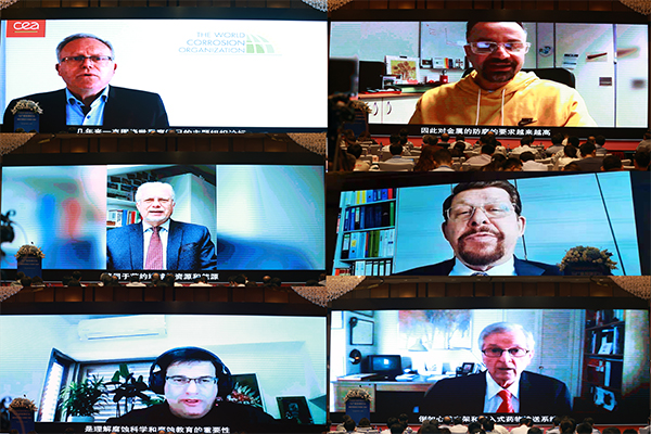 大会还特别邀请世界腐蚀组织主席、欧盟腐蚀协会主席Damien F ron,历任世界腐蚀组织主席Michael Sch tze、Amir Eliezer,国际腐蚀理事会(ICC)主席G nter Schmitt,澳大利亚国立大学工程与计算机科学学院副院长Nick Birbilis,美国人文与科学学院院士、美国工程院院士Ronald Latanision为大会通过视频隔空致辞,共同推动和促进世界腐蚀控制的教育和实践,为取得社会效益与经济效益、节约资源、保护环境贡献力量。