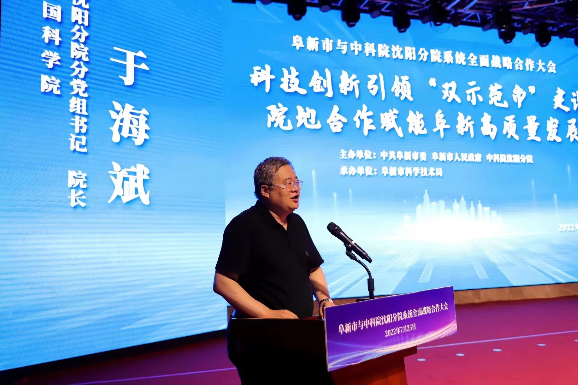 于海斌在致辞中首先感谢阜新市委市政府长期以来对沈阳分院的大力支持,对双方十年来在阜新特色产业发展、阜新生态文明建设、科技成果转移转化等方面的合作成绩表示祝贺。他希望,以此次签约为契机,深化与阜新市的全方位合作,集聚中科院在科技成果和科技人才方面的优势,为阜新市经济转型发展贡献科技力量。