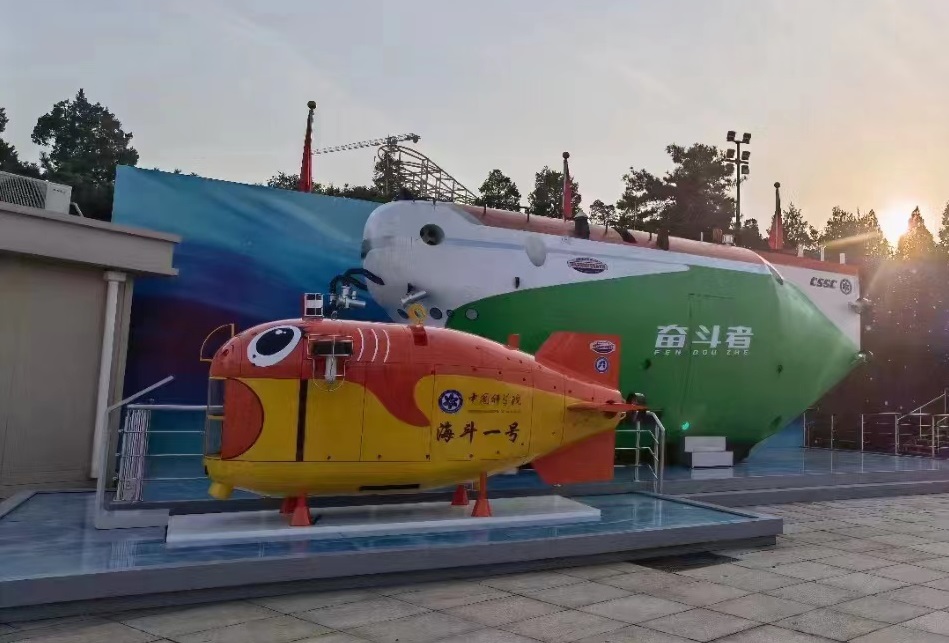室外展区—— “海斗一号” 、“奋斗者”号(左一、左二)