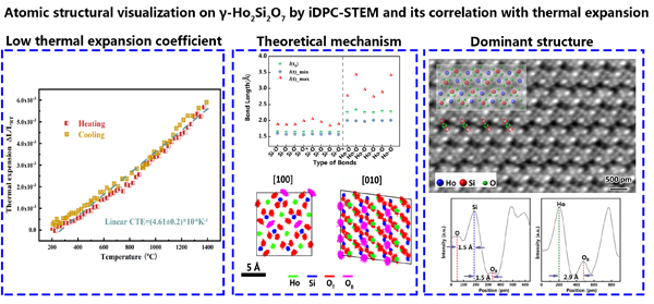 相关成果以“Atomic structural visualization on -Ho2Si2O7 using iDPC-STEM technique and its correlation with thermal expansion as advanced environmental barrier coating”发表于Materials Today Physics (30, 2023, 100961)。特别研究助理吕熙睿为论文的第一作者,张洁研究员等为论文的通讯作者。