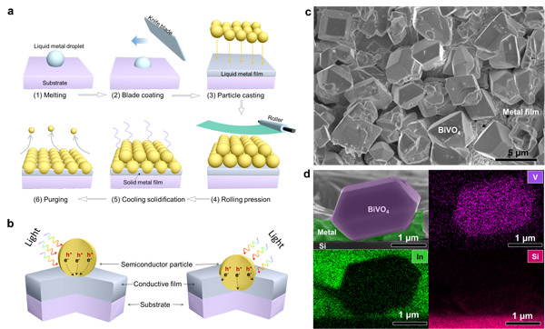 图1. 基于低温液态金属镶嵌半导体颗粒制备嵌入式半导体光活性薄膜