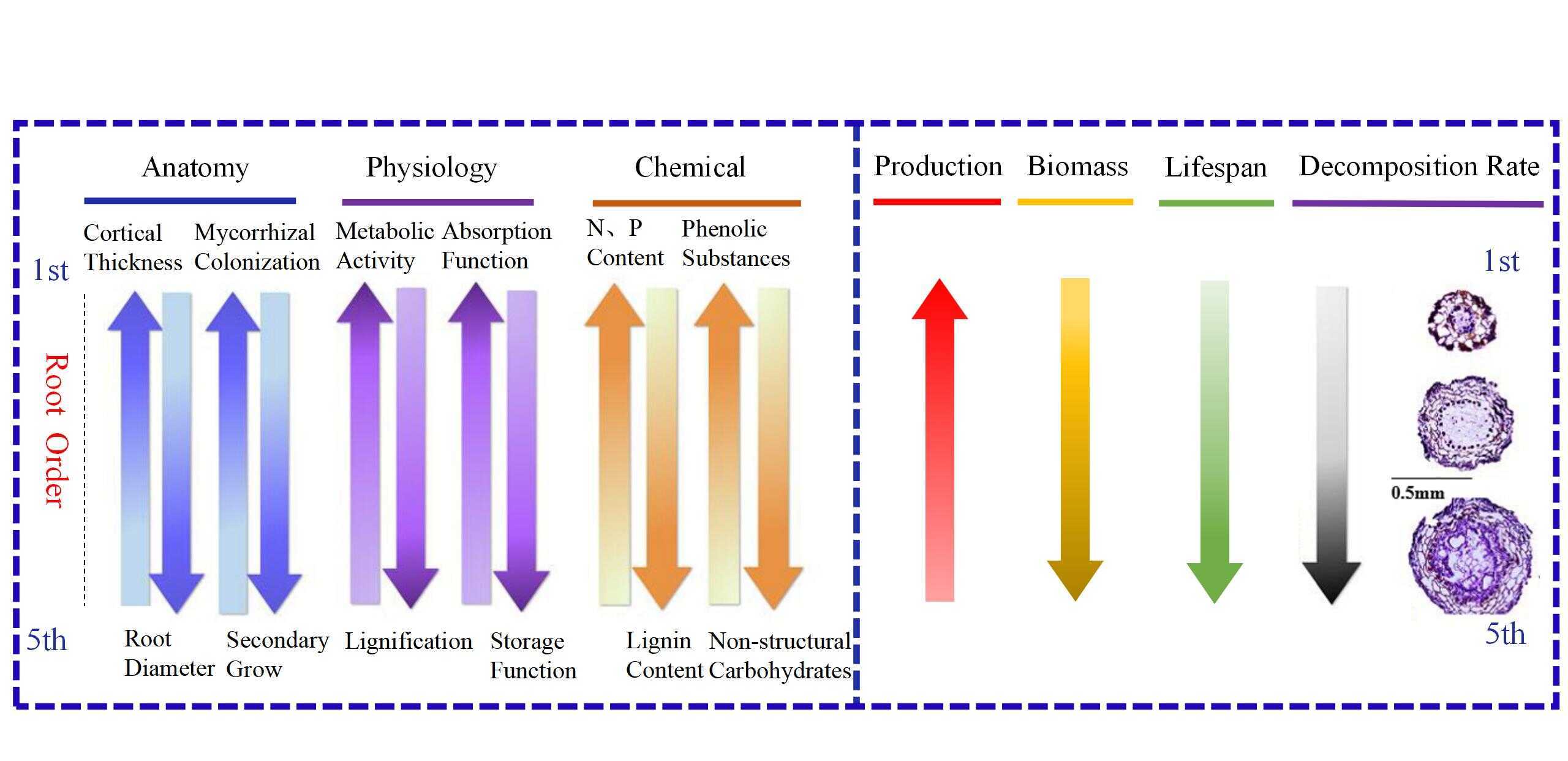 我国是全球人工林面积最大的国家,但存在树种组成单一、地力衰退等林业问题,其服务功能不能满足国家战略需求。该研究成果可为我国人工林地力提升与土壤培育提供参考。例如,未来人工林结构优化或造林过程中,优先补植或选择低级根密度分布较高的树种更有利于土壤肥力和地力的提升,从而加速森林土壤碳和养分循环过程,促进其生产-生态功能协同提升。