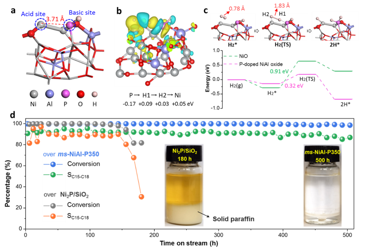 烃基生物柴油(又称绿色柴油)是由废弃油脂等加氢脱氧而来的烃类物质,是国际公认的绿色清洁燃料。在工业上,实现废弃油脂加氢脱氧的催化剂主要为过渡金属硫化物(如CoMoS),因硫元素易于流失,需要在催化反应中不断地补充含硫化合物,以维持催化剂活性,这导致了生产成本增加、设备腐蚀及环境污染等一系列问题。因此,开发高效、稳定的无硫催化剂对绿色柴油的规模化推广意义重大。