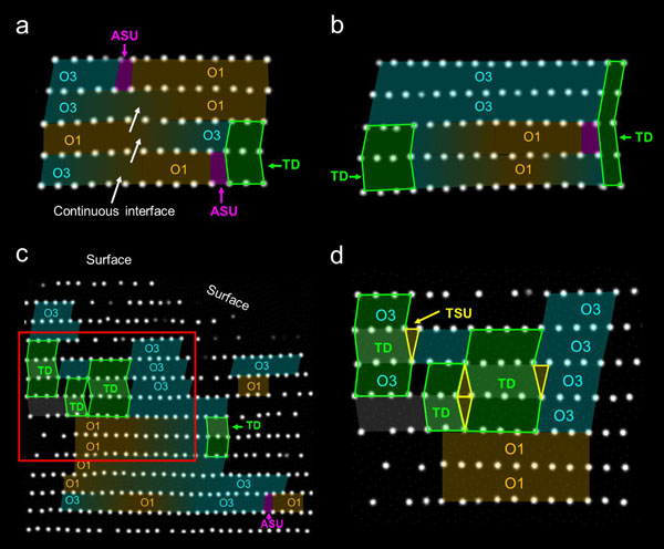 图3. 层状氧化物正极中剪切相界面结构的精细原子构型分析