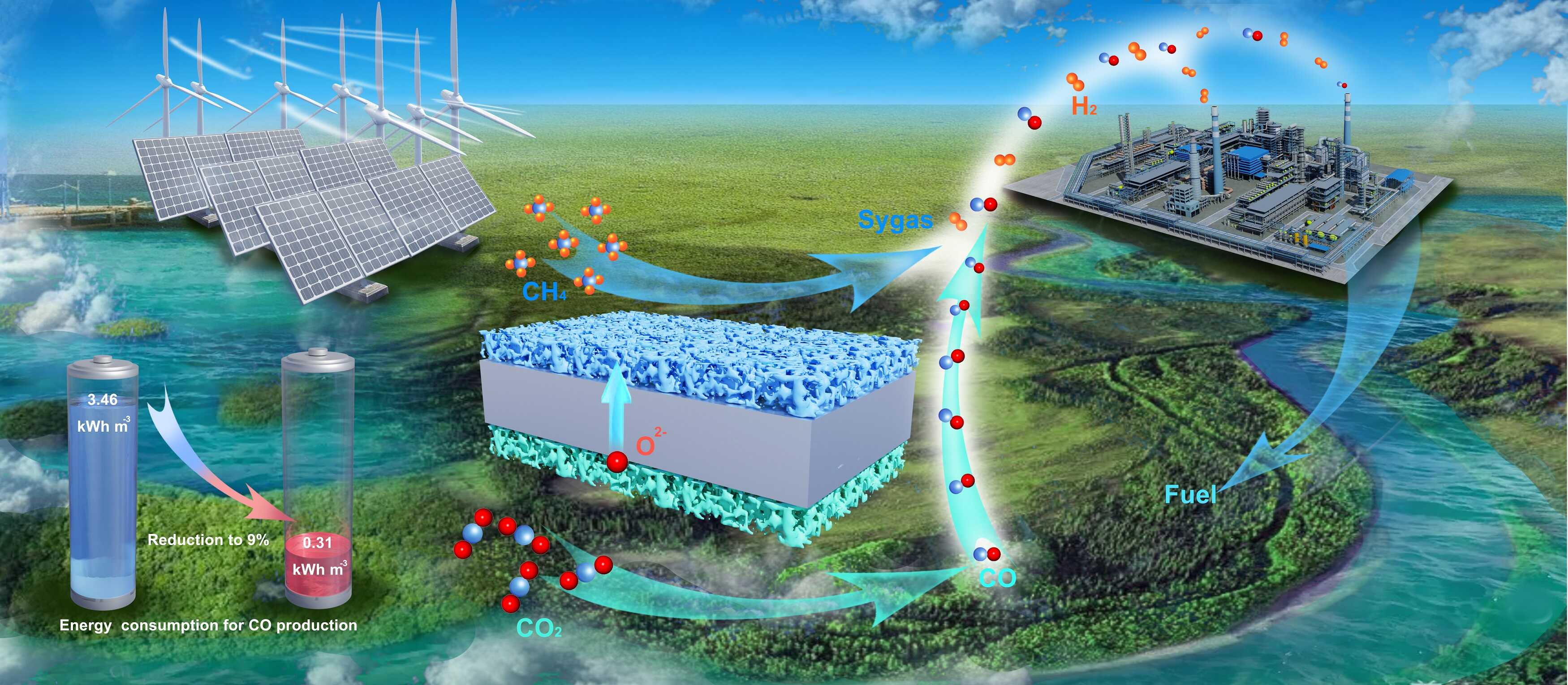 相关研究成果以“In situ exsolved CoFe alloy nanoparticles for stable anodic methane reforming in solid oxide electrolysis cells” 为题发表在《焦耳》(Joule)上。该工作的共同第一作者是502组博士研究生郭宜阁和博士后王硕。上述工作得到国家重点研发计划、国家自然科学基金等项目的资助。