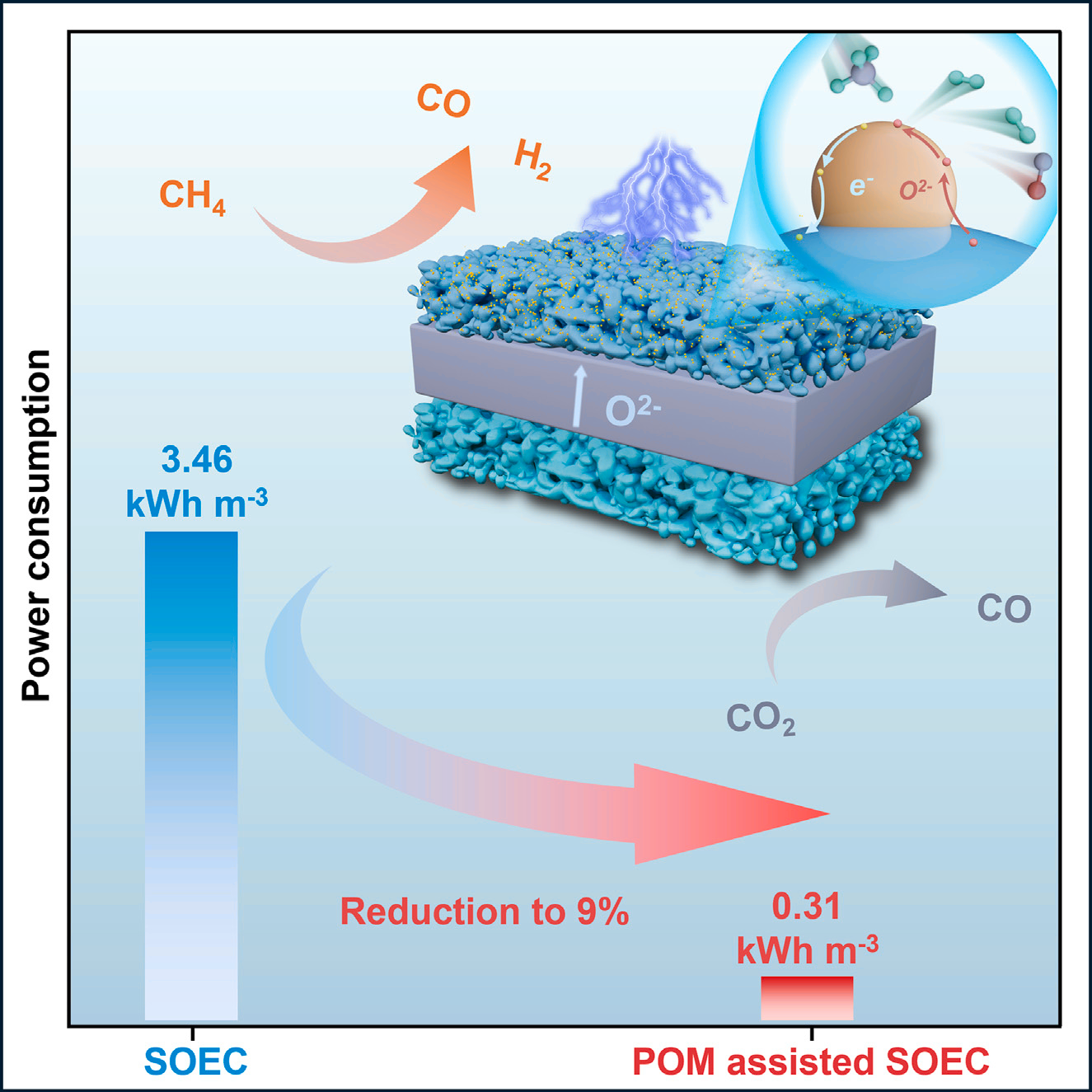SOEC因其电解效率高,稳定性好,??榛潭雀叩扔攀?,被认为是一种具有应用潜力的CO2电解器件。在SOEC阳极以甲烷半氧化重整反应(POM)替代缓慢的析氧反应(OER),有利于降低CO2电解总能耗。然而,传统的钙钛矿阳极材料甲烷重整活性低、稳定性差,因此设计高活性阳极甲烷重整催化剂具有重要意义。