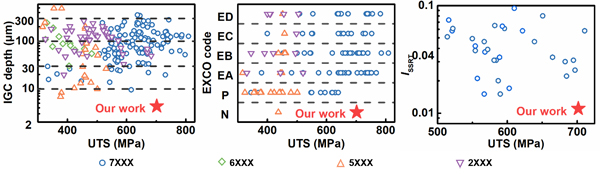 图1. 高强高耐蚀7075铝基复合材料优异的耐晶间腐蚀、剥落腐蚀和应力腐蚀性能
