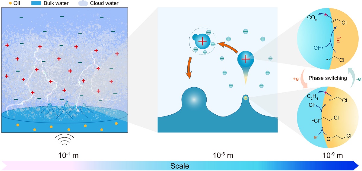 近日,中国科学院大连化学物理研究所生物能源化学品研究组研究员王峰、副研究员贾秀全团队在微液滴化学研究方面取得新进展,利用微液滴的起电-放电现象,开发水相电化学选择性脱氯策略,将二氯乙烷转化为重要的聚合物单体氯乙烯。