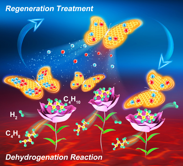 烯烃是现代化工生产高附加值化学品的关键原料,其高效制备具有重要意义。烷烃脱氢是直接制取烯烃的重要途径,在工业生产和基础研究领域都受到广泛关注。然而,如何在高效利用碳氢资源的同时降低脱氢工艺的能耗,仍然是该领域亟待突破的技术难题。由于烷烃(如乙烷、丙烷和丁烷)具有稳定的几何构型和热力学稳定的强化学键,通常需要高温(>550 ℃)来克服C-H键断裂的反应能垒。但高温条件易引发C-C键断裂、氢解反应、聚合反应等副反应以及金属催化剂烧结,不仅降低了烯烃选择性,缩短催化剂使用寿命,而催化剂自身的C-H键活化能力依然有待提升。因此,设计低温高效的脱氢催化剂是烷烃脱氢领域的重要研究方向。