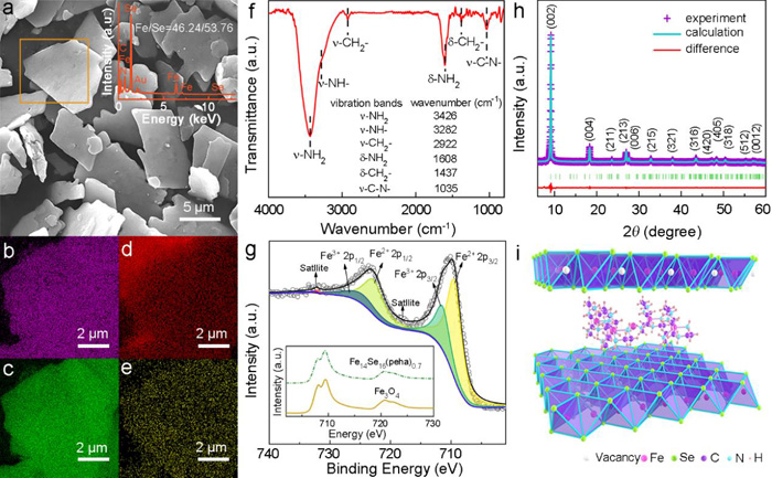 Fe14Se16(peha)0.7纳米片的形貌、化学成分和结构表征