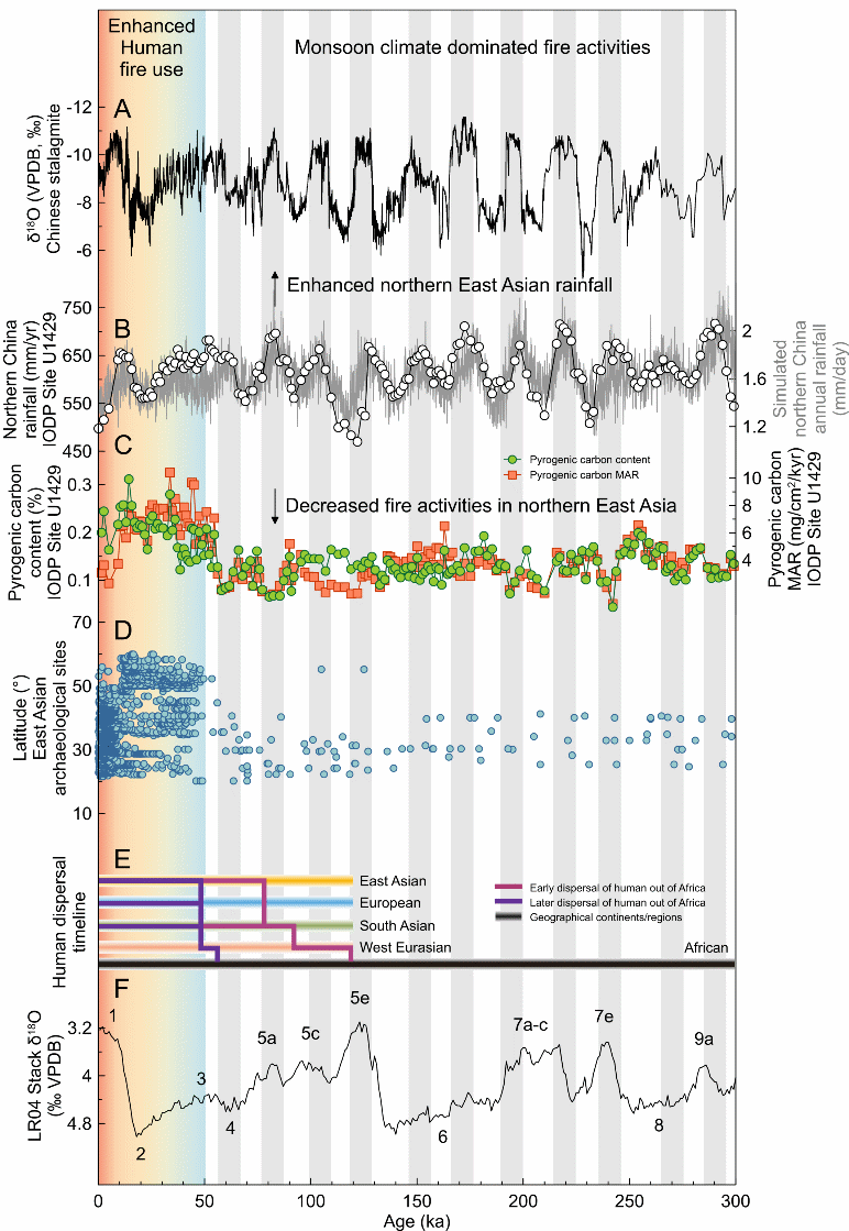 近日,中国科学院海洋研究所万世明团队在《美国国家科学院院刊》(PNAS,Proceedings of the National Academy of Sciences)发表了题为“Onset of extensive human fire use 50,000 y ago”的重要研究成果。该研究基于海洋沉积物中的黑碳记录重建了过去30万年以来东亚北部的古火演化历史,结合欧洲、东亚、东南亚及澳大利亚区域的记录以及考古遗址大数据,发现现代人类的大规模用火始于约5万年前。