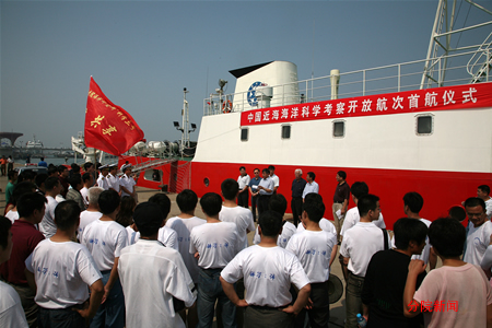 仪式最后,在海洋研究所相建海所长“2006年中国近海海洋科学考察开放共享航次正式开始”的命令下,早已整装待发的“科学三号”海洋科学考察船汽笛长鸣,在大家的祝福声中起锚远航,开始了它的近海海洋科学考察之旅。据悉,本开放共享航次结束两年后的所有数据、资料、样品等将面向全国开放。(海洋所供稿)