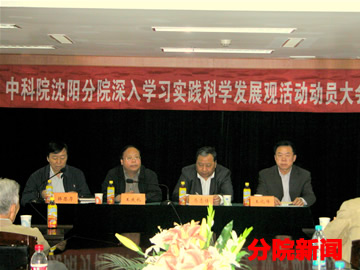 10月15日下午,中科院沈阳分院召开深入学习实践科学发展观活动动员大会。沈阳分院系统沈阳地区各单位领导、党办主任及分院机关全体党员100余人参加了动员大会,省委深入学习实践科学发展观活动领导小组第十一指导检查组的全体同志出席了动员大会。会议由沈阳分院副院长韩恩厚主持。