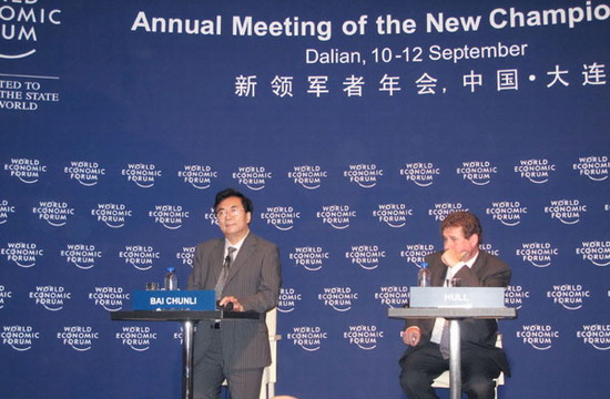 在到大连化物所调研之前,应达沃斯论坛的邀请,白院长参加了2009年大连夏季达沃斯年会暨世界经济论坛第三届新领军者年会的纳米技术互动式会议。白院长通过自由发言、互动讨论就如何确保纳米技术在10年内发挥其潜力发表了观点,特别强调了纳米安全性、纳米标准、纳米科技的技术转移与风险投资等方面的重要影响。