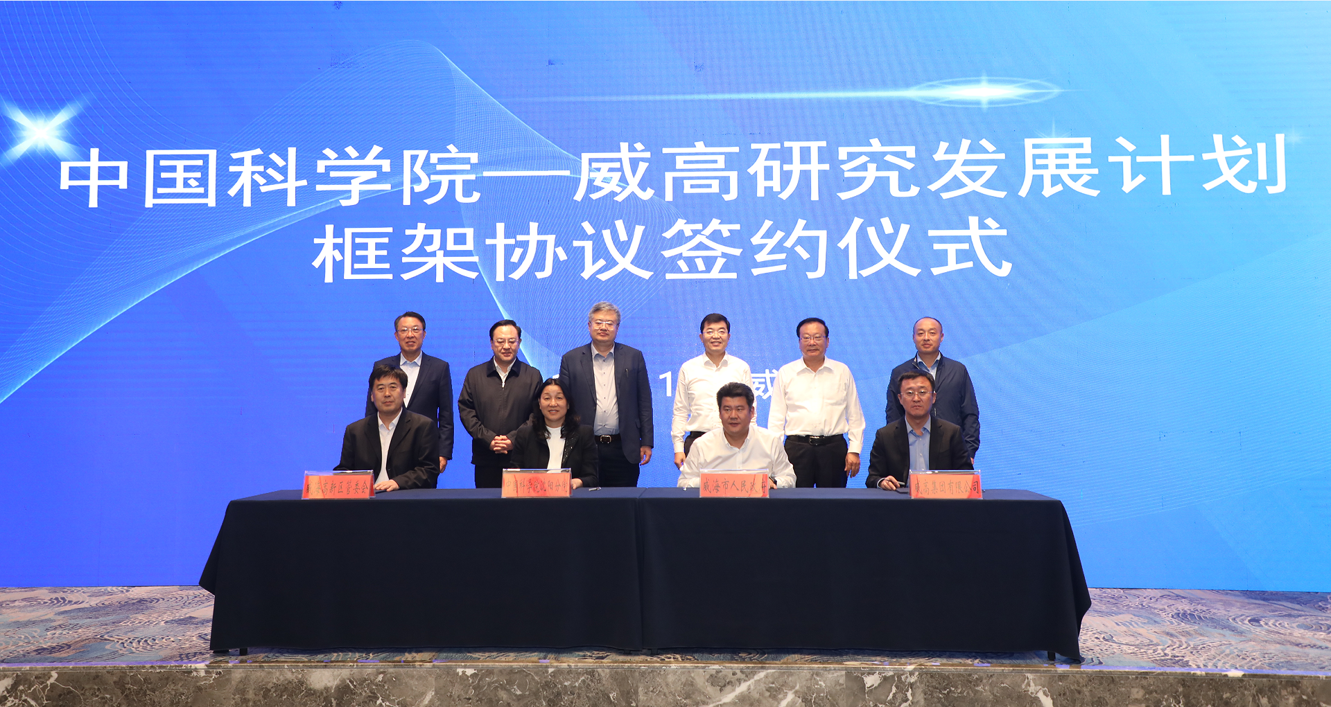 马越红代表沈阳分院与威海市政府、威海高新区、威高集团共同签署《中科院—威高研究发展计划框架协议》。