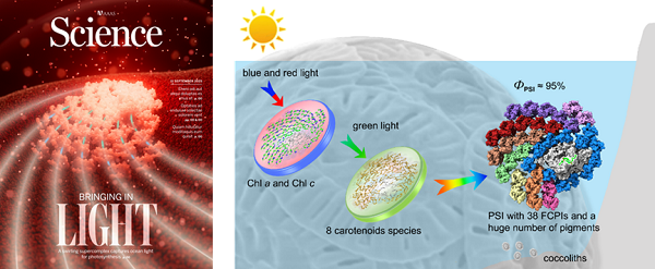 图1 Science封面报道以及赫胥黎艾氏藻的PS I-FCPI超复合体模型