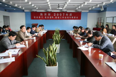 会上,安全保卫、信息宣传、保密工作的负责同志分别汇报了2007年度工作的总体情况,详细分析了存在的问题,并部署了海洋所2008年度安全保卫、信息宣传、保密工作要点。与会人员针对总结情况进行了讨论,提出了许多很好的建议。最后,朱继春处长宣读了2007年度安全保卫先进个人、信息宣传先进集体和个人、保密工作先进个人名单,对获表彰的单位和个人表示祝贺,同时希望他们再接再厉,做出更大成绩。