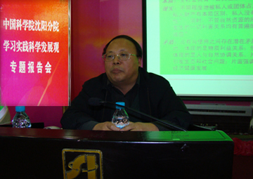为了进一步搞好学习实践科学发展观活动第一阶段的学习培训,10月28日下午,沈阳分院在沈阳自动化研究所学术报告厅召开报告会,由沈阳分院院长、党组书记、学习实践活动领导小组组长王庆礼同志作题为《从自然资源的价值、伦理及可持续发展到科学发展观》的学习辅导报告。沈阳分院系统(沈阳地区)部分处级以上党员干部、党支部书记和分院机关全体党员共200余人参加了报告会,辽宁省委学习实践活动指导检查组的领导同志到会进行指导。