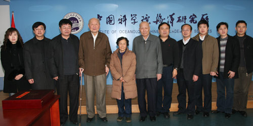1月28日,山东省人力资源和社会保障厅副厅长黄麟英、省委组织部人才工作处车飞等领导在青岛市人力资源和社会保障局副局长王德富、市委组织部人才工作处副处长杨善星等陪同下,到中科院海洋所走访慰问两院院士。所党委书记王启尧接待了黄麟英副厅长一行。
